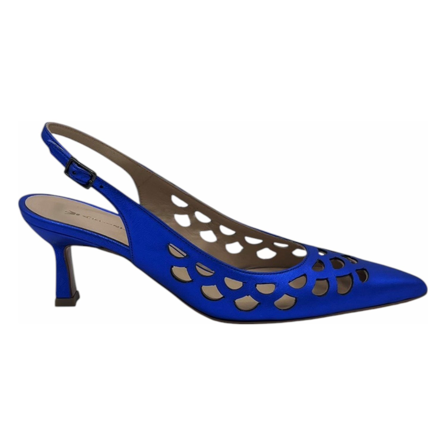 Μυτερή φόρμα με κομψά κοψίματα που αποκαλύπτουν διακριτικά το πόδι. Το λεπτό τακούνι και οι συμμετρικές καμπύλες δημιουργούν αίσθηση φινέτσας και αρχιτεκτονικής ισορροπίας. Ένα σχέδιο που ενώνει τη δεξιοτεχνία της φόρμας με τη μοντέρνα αισθητική του φωτός και της κίνησης.